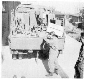 While in England, both the Signal Supply Section and the Radio Maintenance Section were taxed to capacity in carrying on their normal functions. Under 1st Lt. Patrick Tierno and Tech. Sgt. Jerry Nolan (both of whom were later hospitalized and evacuated to the States) the Signal Supply crew was constantly making long trips to pick up supplies at depots scattered all over England.