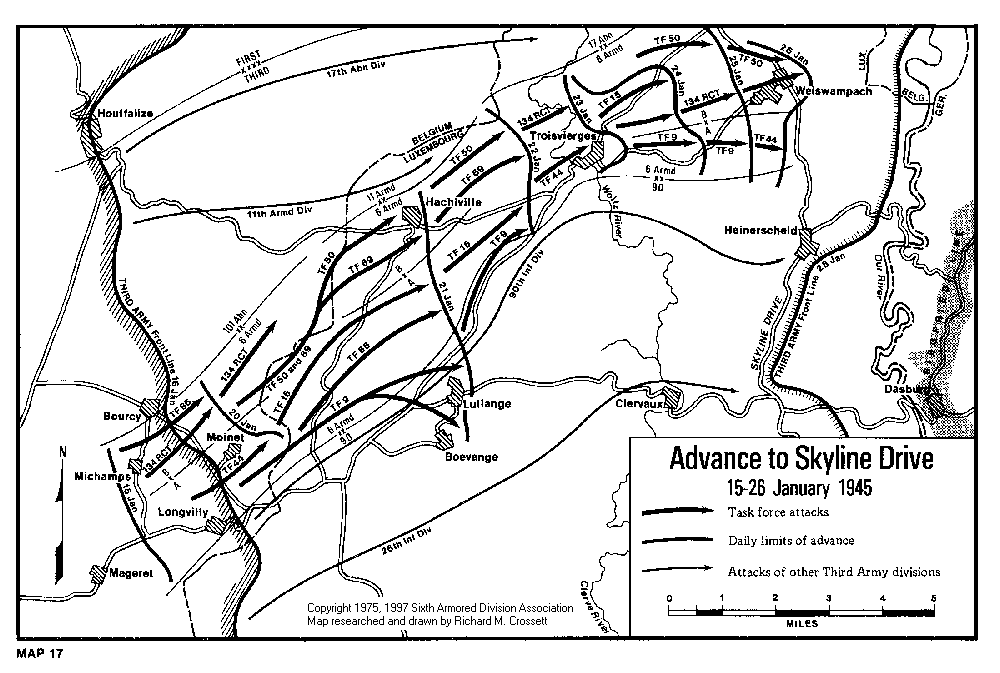 Of particular interest, perhaps, are certain maps such as Map 4, which illustrates the Super Sixth's highly unusual 180 turn to attack the German 266th Division at their rear, and Maps 14 through 17 which show the Super Sixth's major but often-overlooked battles in the Ardennes campaign.