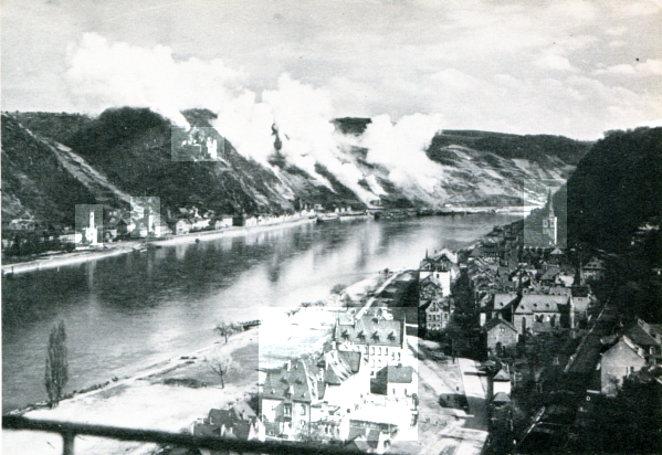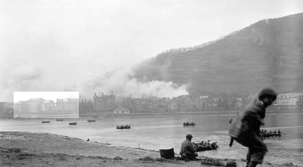 Along with Nierstein which is less than two kilometers downstream, Oppenheim shares the credit for being the first Third Army crossing of the Rhine. (Remagen was taken by First Army.) It's also of the most personal interest to me, since this is where the 6th Armored Division crossed the Rhine.