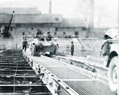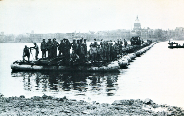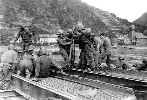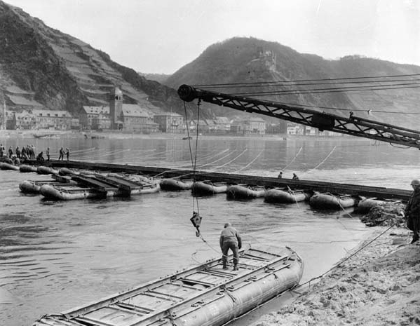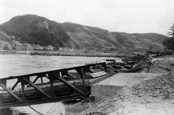 Notable for being one of the first two Third Army crossings (the other being Oppenheim, see below), forced by the 5th Division at 2200 on March 22. Also notable for being the crossing where Patton famously stopped his jeep in the middle of the pontoon bridge, and then urinated into the Rhine. He also feigned a stumble on the east bank and grabbed two fistfuls of German soil, in emulation of William the Conqueror. There is also a photo of a 6th Armored Division DUKW coming ashore.