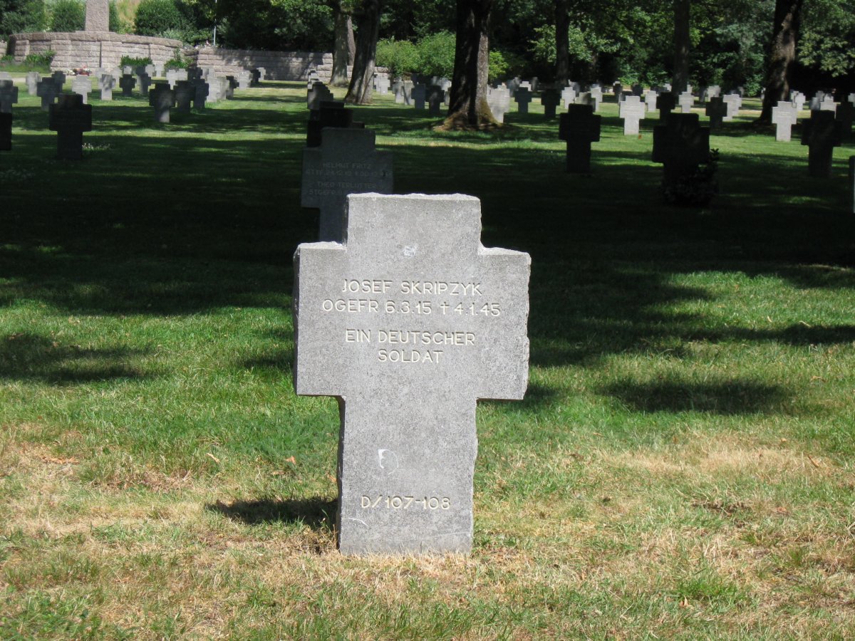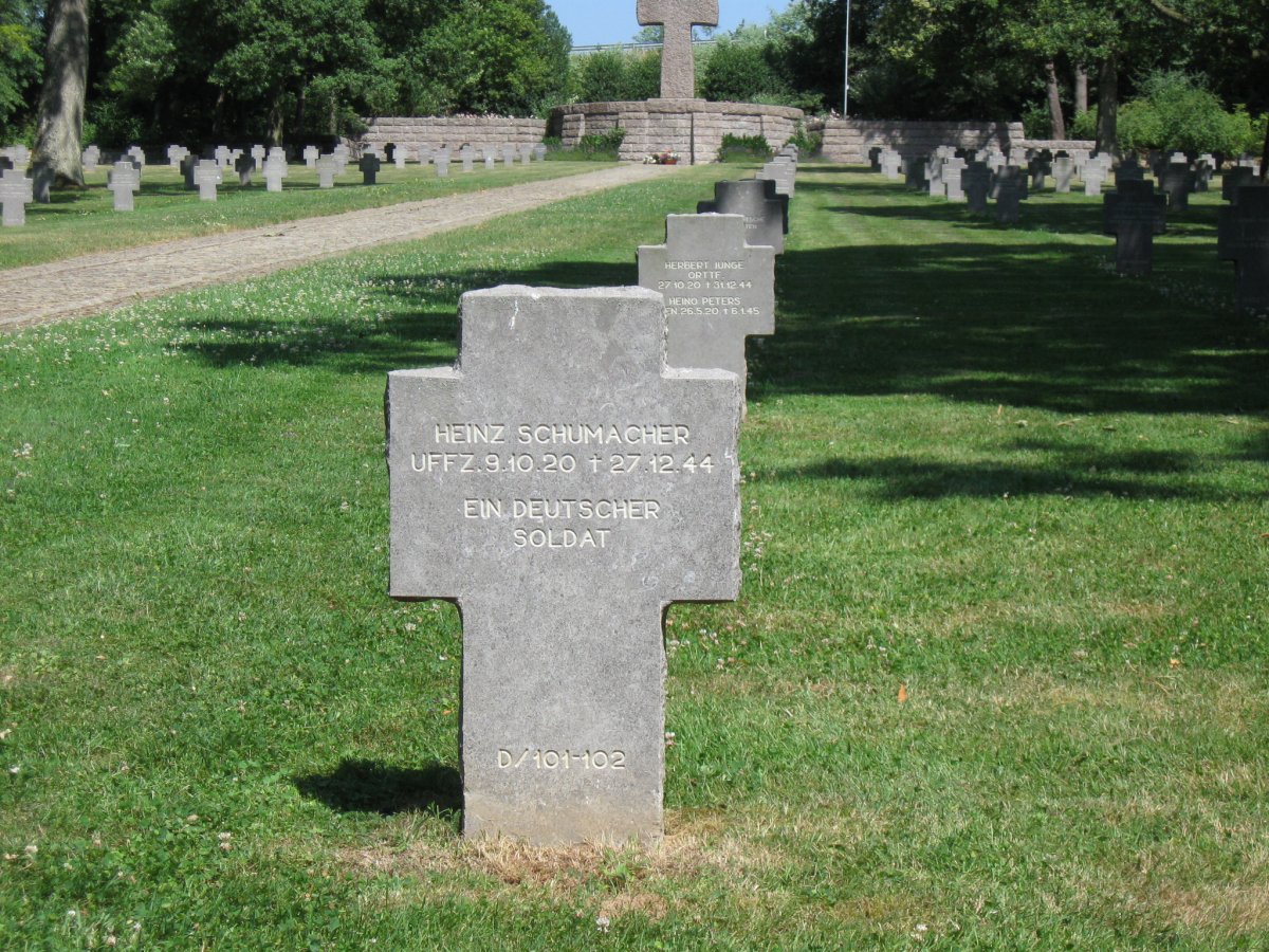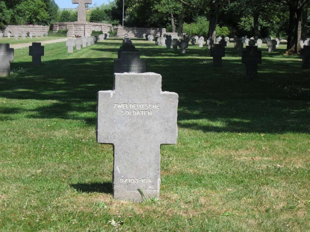 Each stone marks four grave sites, two on each side. When known, the name of the soldier and his birth and death dates are provided. Often, the soldier is an unknown, and the engraving simply reads "EIN DEUTSCHER SOLDAT", "A German Soldier".