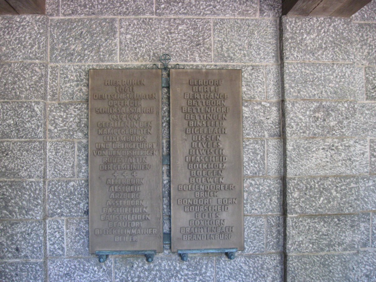 The plaques list the German towns from which the soldiers came: