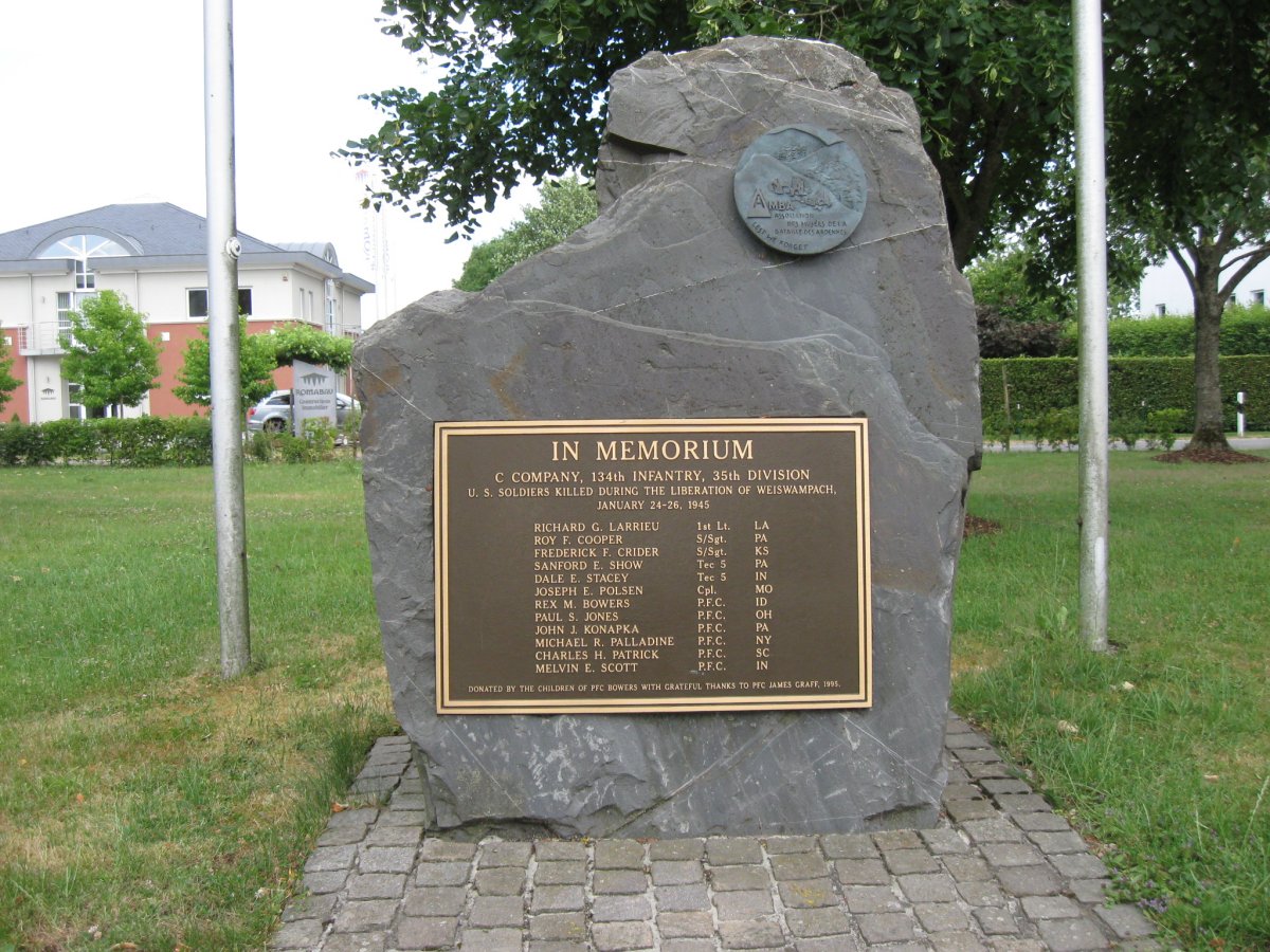 In the center of Weiswampach, we visited the impressive memorial to Co C, 134th Infantry, 35th Infantry Division, who fought side-by-side with 6th Armored Division units.