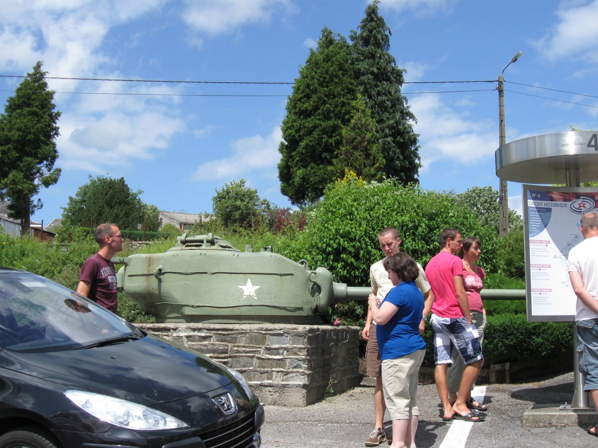 At this point, it was already lunch time, so we drove back to the Bastogne memorial to pick up Daniel's car, and we drove to Bastogne to find a good place for lunch. I won't take up space here with photos of Bastogne center and the memorials there. They are often photographed, and don't have a direct connection to the 6th Armored Division. Suffice it to say we had a good lunch, followed by good ice cream.