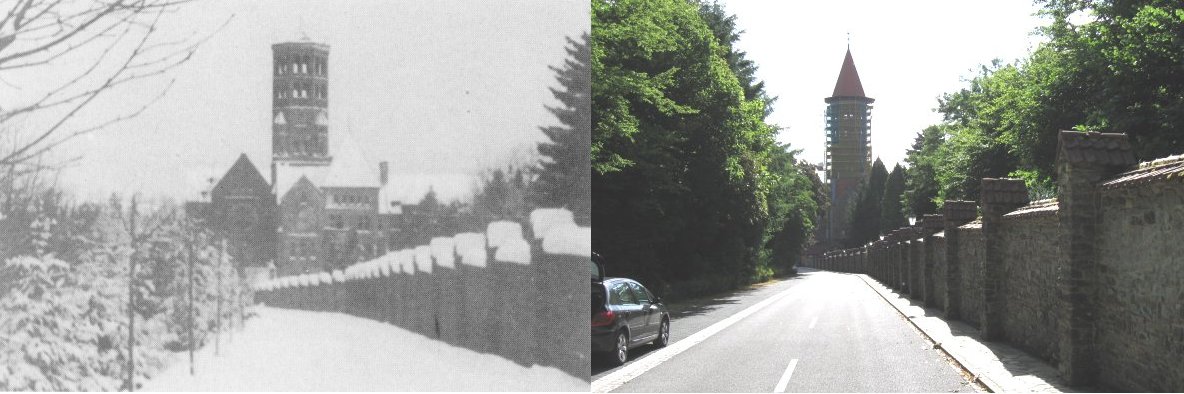 We did a quick look around to see if we could recognize the building where the photograph was taken, but did not see any likely candidates. Incidentally, this site is typical of many Belgium sites: tank turrets are mounted at town borders and at historical sites throughout the country.