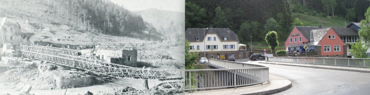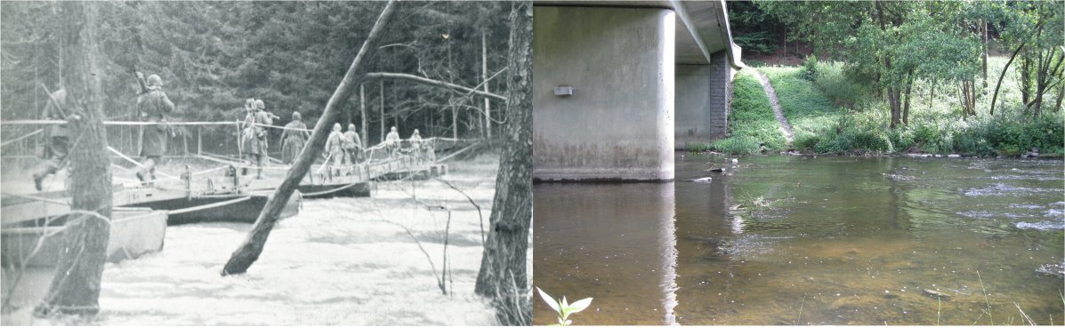 In any case, Daniel took us first across the bridge on the road out of Kalborn. This was where Horace Lennon, 25th Armd. Combat Engineer and husband of long-time Sixer e-mail list member Pat Lennon had been tossed into the freezing water of the Our River during a crossing attempt. And it provided me with my next opportunity for a "then & now" photograph.
