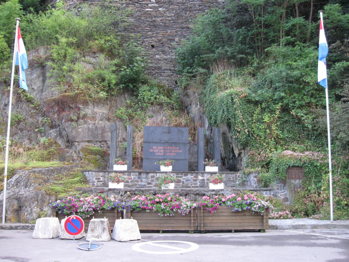 Around 7:15 AM, while the rest of my family was getting ready for breakfast, I made a brief walking tour of Clervaux. I wish I had gotten up an hour earlier, because there is much to see there, and I didn't permit myself anywhere enough time. The first thing I discovered not far from the hotel was a memorial to Clervaux citizens of WW II.